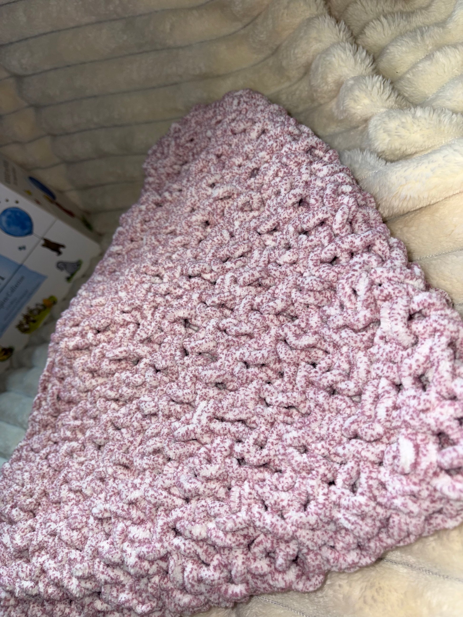 Hand Knitted Needle Knitted Baby Pram Blanket , Multicolour Pink 25x30inch