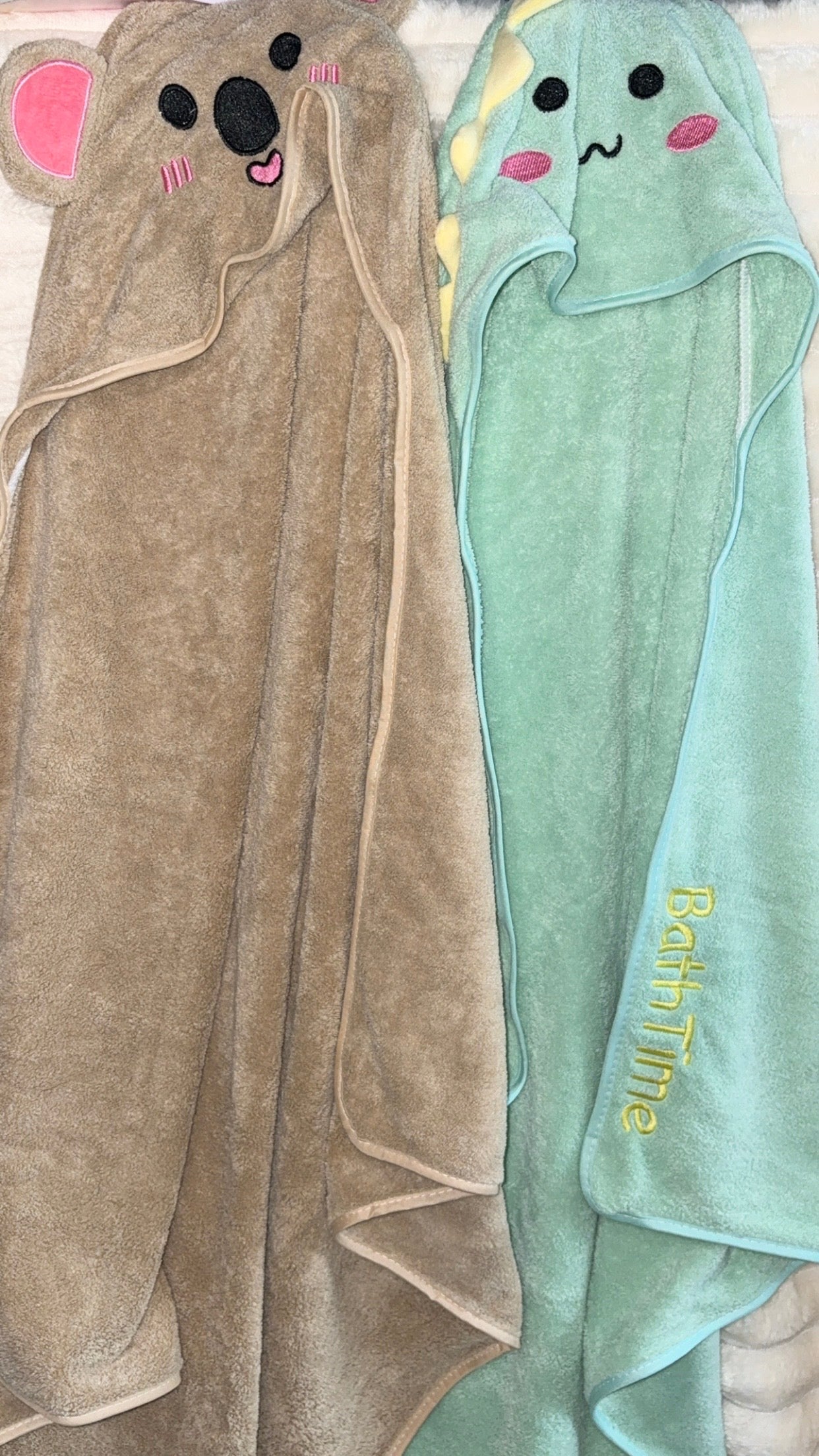 Personalised Baby Towel – Embroidered Hooded Towel with Name, Koala or Dinosaur Design